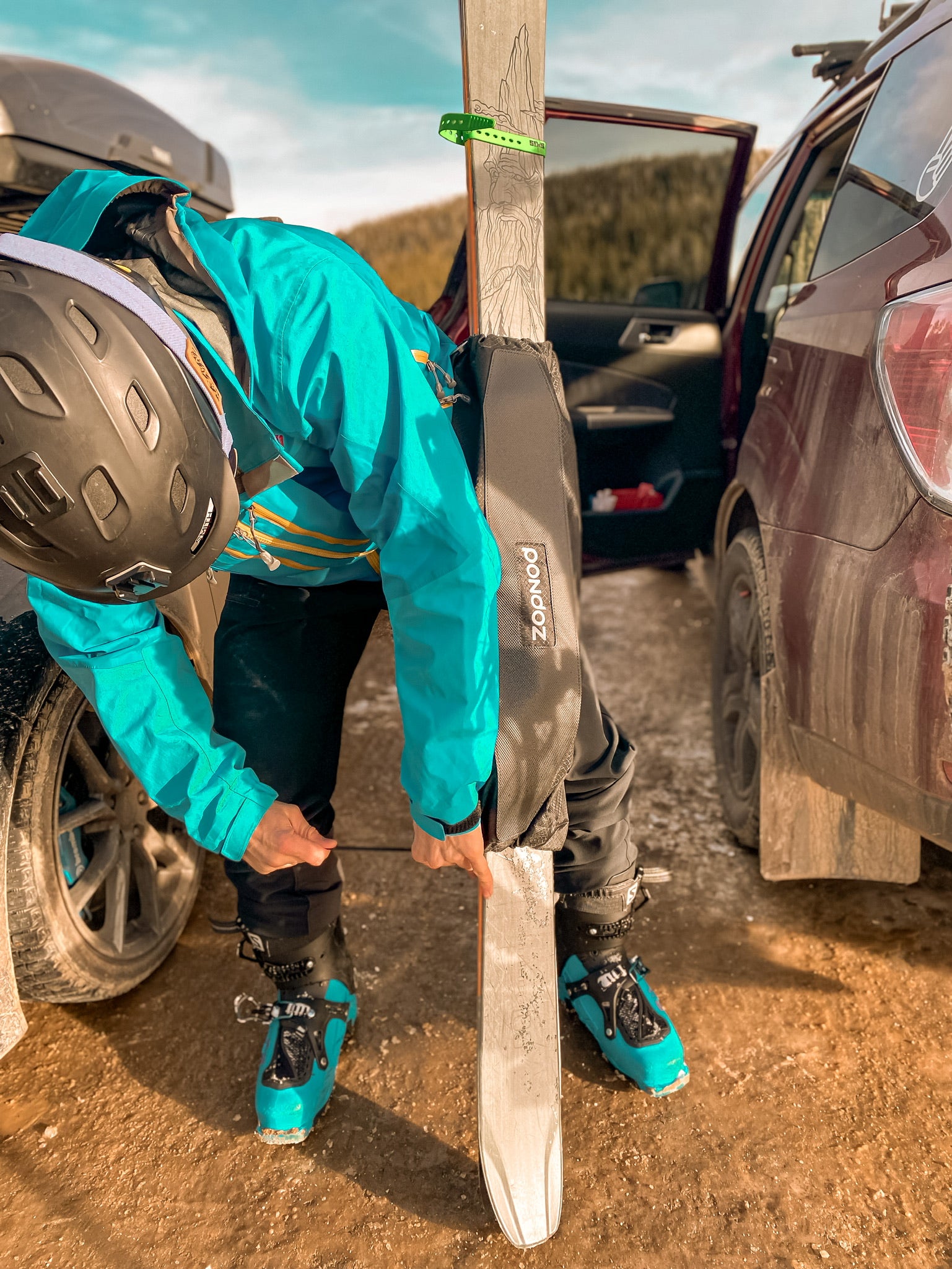 Our adjustable carry strap has a "D-Ring" feature that allows you to use the strap to carry your skis without the slippers. When its time to protect your skis again, clip the strap back on the slippers and go!