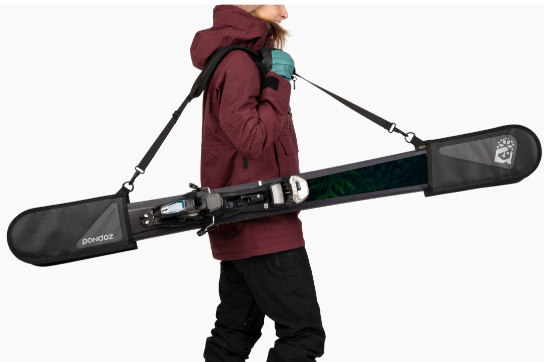 Our adjustable carry strap has a "D-Ring" feature that allows you to use the strap to carry your skis without the slippers. When its time to protect your skis again, clip the strap back on the slippers and go!